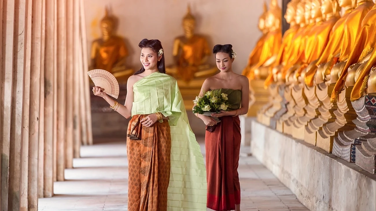 The national dress, introduced during the mid-20th century by Queen Sirikit, is worn for special occasions. It is shortened to “Chut Thai” from “Chut Thai Phra Ratcha Niyom”, meaning, “Thai dress that has been royally endorsed”. For women, it consists of eight variations of the tubular skirt, shawl and a top. Men have one formal outfit, called a “suea phraratchathan” (royally bestowed shirt) that consists of a high-collared button-down top, sash and suit pants. Rent a traditional outfit from Baba Closet Phuket or buy a modern version of the Chut Thai from Peranakan Phuket Boutique or Pha Thoong Noong Dai.